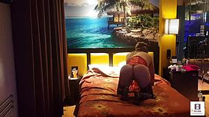 She grabs her friend's big ass in garter belt during spanking massage.