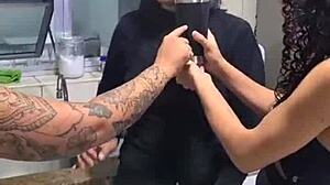 Tattooed Stud Pounds Oiled Pussy Hard While Cuck Watches Smoking