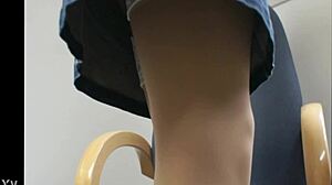 Stockinged British Teacher In Heels And Garter Belt Watches Sub Jerk Off In Classroom Voyeur Scene