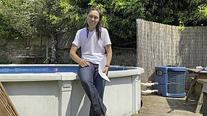 Agent pokes a beautiful petite model during rough wet casting session. Watch her shine!