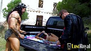 Muscular Bodybuilder Pounds Blonde Milf's Pussy in Forest Doggystyle