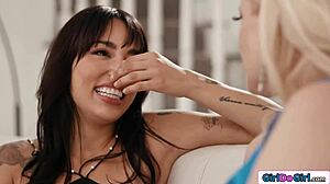 Blonde Lesbian Sniffs Roommate's Lingerie Then Licks Pussy
