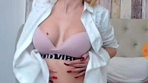 Damn! Blonde with big natural tits chats topless and plays around!