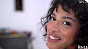 Gostosa rabuda Julia Almeida rides interracial cock for bareback anal with fingering.