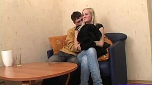 Ξανθιά κοπέλα αμοιβαία μαλακία με τη μητριά σε φούστα ενώ ο άντρας στη δουλειά, αντίθεση με ξυρισμένη πούτσα που γίνεται