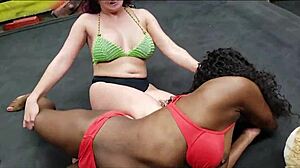 cfnm mixed wrestling showdown with hoodman. muscular legs dominate the ring.