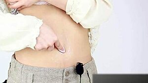 Asian girl gets cumshot on her belly after huge pussy fucking