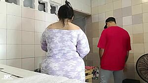 chubby latina mommy sets up hidden camera in kitchen to record rough creampie sex with hijastro when alone at home