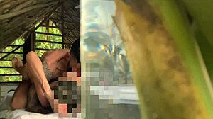 Aku tak boleh berhenti tengok tetek semula jadi besarnya melompat sambil dikongkek doggystyle dari belakang