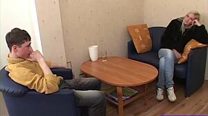French Cougar Blonde Milf with Big Tits Handles Two Young European Amateurs