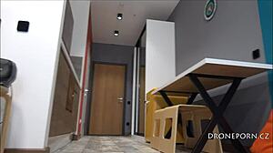 At nude barbershop, I touch myself while hairdresser trims my hair.