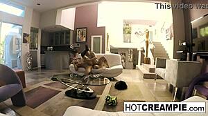 Gizli kamera, üvey kız kardeşin odada kilitlenip erkek arkadaşıyla oral, köpek pozisyonu, sürüş, el işi için yakalar