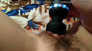 Bushy Brunette Babe Masturbates with Lollipop Before Toy Play