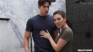 Remodeling the bathroom turns into blowjob and doggystyle with brunette choking on cock 😏🚿