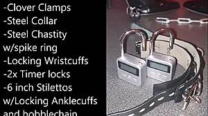 Sexy milf hints at domination with anal dildo insertion in cage for chastity play