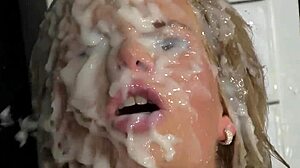 gloryhole solo babe takes messy facial and multiple cumshots in wild session.