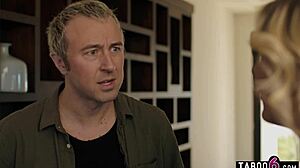 Babysitter dillion harper gives rimjob to stepdaddy in lingerie. She joins milf for group sex with big cock blowjob and pussy licking.