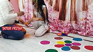 Indian Priya's Rough Wedding Fuck with Step Brother During Holi Festival Party in Homemade HD