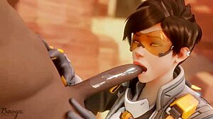 feeling overwhelmed with desire as tracer swallows cum in this intense cartoon scene