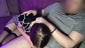 Sexy girl in fishnets sloppy sucks dick until cum in mouth - sunako kirishiki!