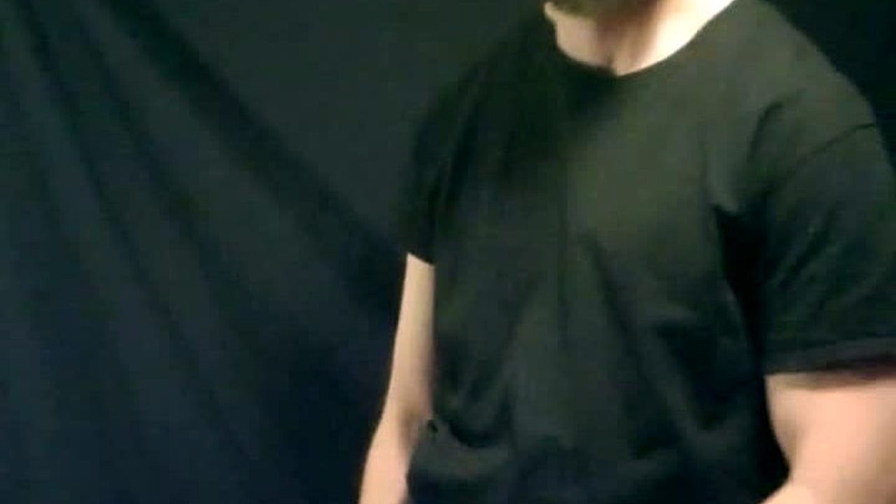 "Watch this muscular bodybuilder stroke his big black cock until he cums all over himself."