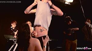 "Young German model Carla Mai seduces to fuck with huge monster cock in front of people at outdoor casting"