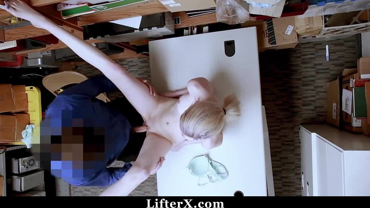 The loss prevention officer catches the teen burglar at work and dominates her with doggystyle fucking.