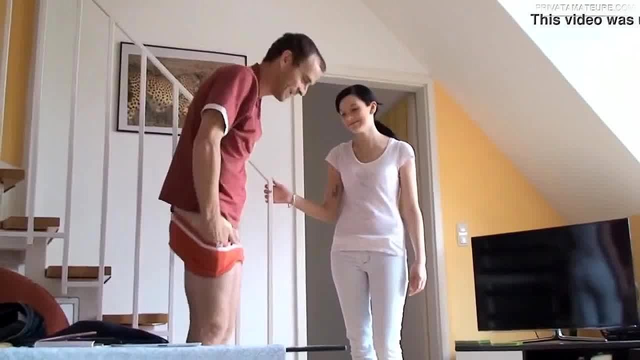 cute 18-year-old girl eagerly takes cum in mouth. she swallows every drop with a shy smile.