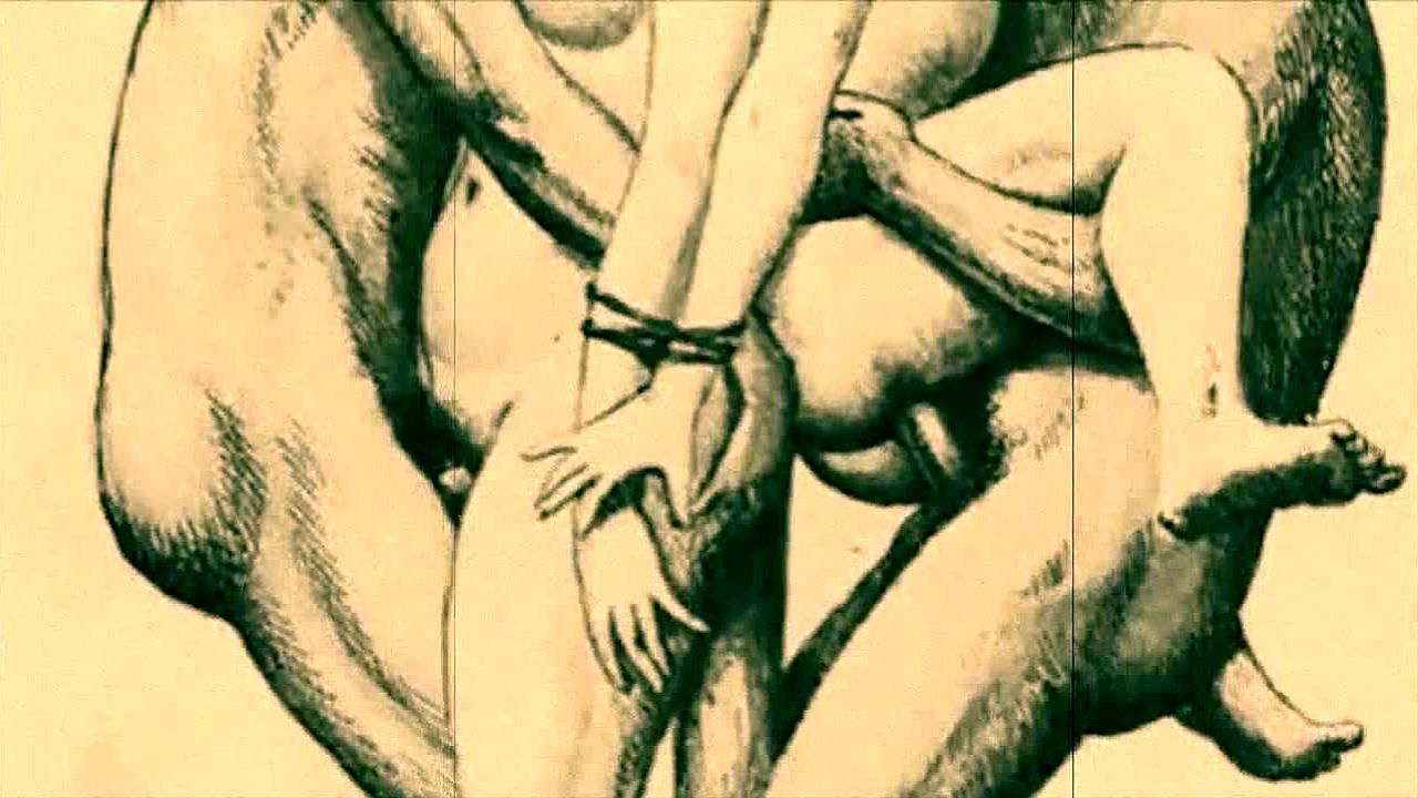 Vintage cartoon illustration of antique anime hentai in retro erotic style