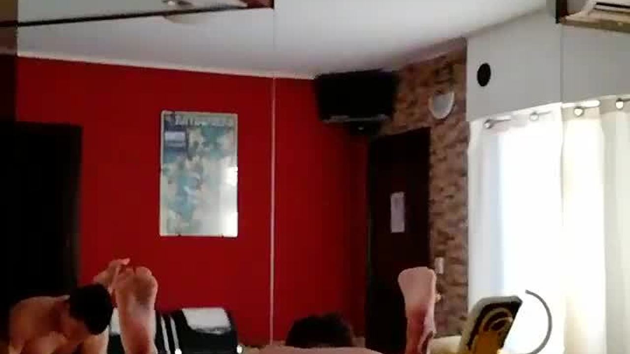 Joven se folla a sus 2 hermanastras en la cama de su madrastra distraida.