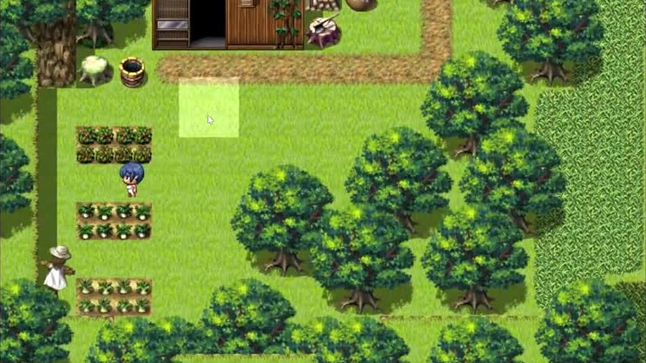Tanned girl Natsuki in hentai game episode 12 masturbates huge BBC outside.