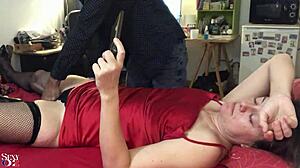 "2090ip white amateur milf in red satin dress gets doggy style pov ass licking blowjob spanking"