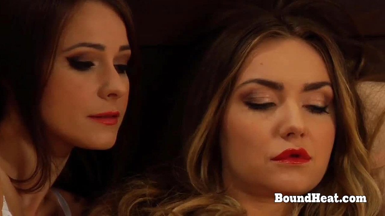 This sensual oily massage turns into wild masturbation between lesbian madame and her bound slave 😈