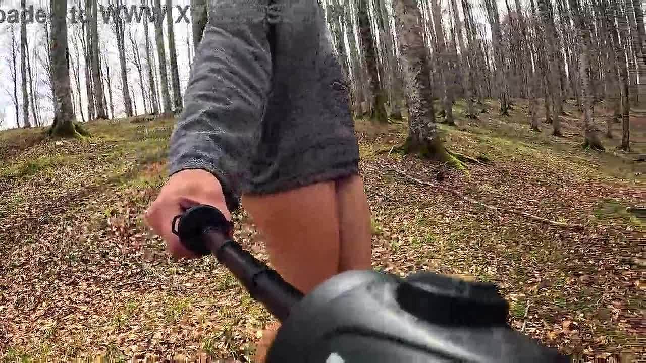 sexy 18 yo girl rubs her hairy pussy outdoors in forest.
