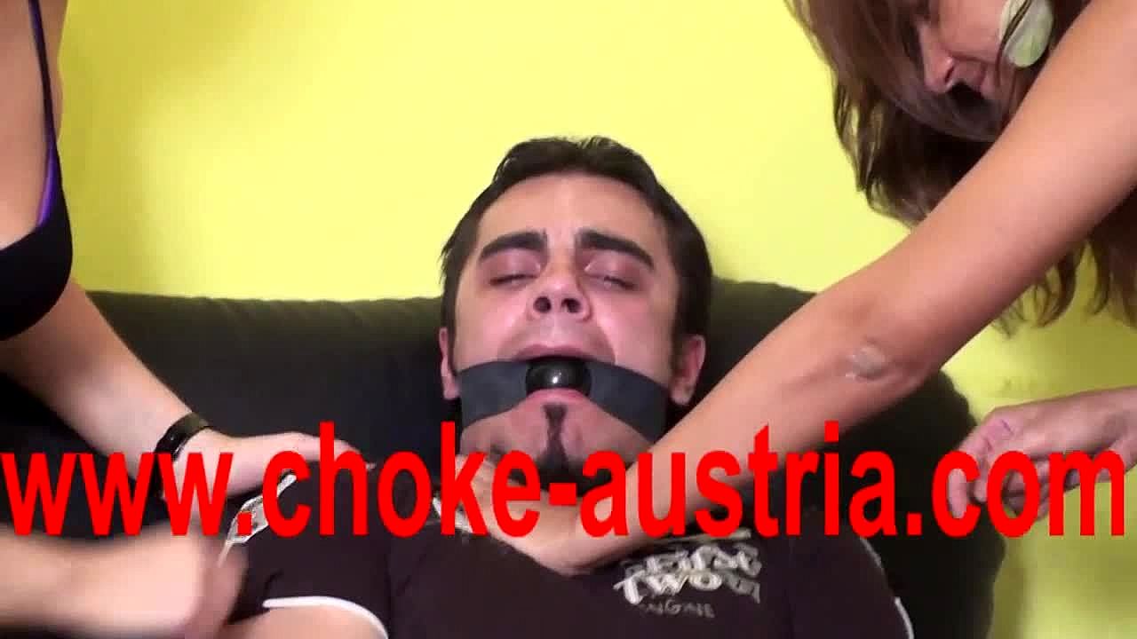 blonde tied up slave fucks gagged lesbian from behind with choking and bdsm submission?